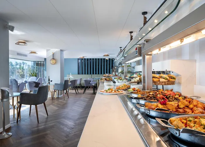 You can choose from one of the 167 air-conditioned rooms with a flat-screen TV with satellite channels, and self-catering amenities like a minibar. Guests can use a sauna, along with a hairdryer and complimentary toiletries. The hotel also features captivating views of the Mediterranean Sea.